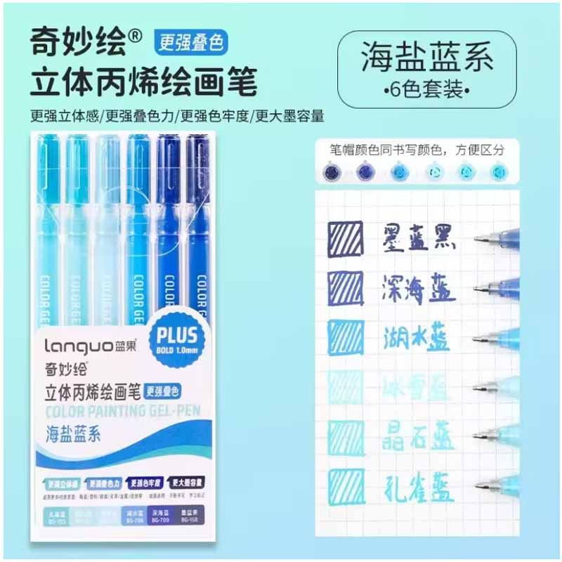 Languo Colour Gel Pen Plus Set of 6 Blue (P600-33)