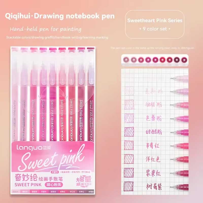 Languo Gel Pen Set of 9 Sweet Pink Series LG-D0563