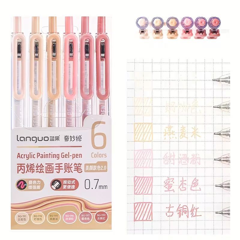 Languo Retractable Acrylic Gel Pens 6 Colors Set (D200-11)