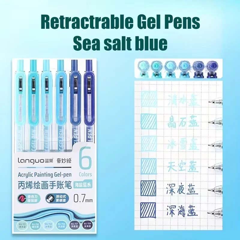 Languo Retractable Acrylic Gel Pens Sea Salt Blues 6 Colors Set (D200-6)