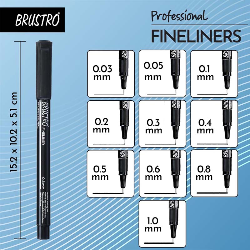 • Assorted Sets of 8 Pens (Includes: 1 each of 0.03mm; 0.05mm; 0.1mm; 0.2mm; 0.3mm; 0.4mm; 0.5mm; 0.6mm; 0.8mm; 1.0mm.)