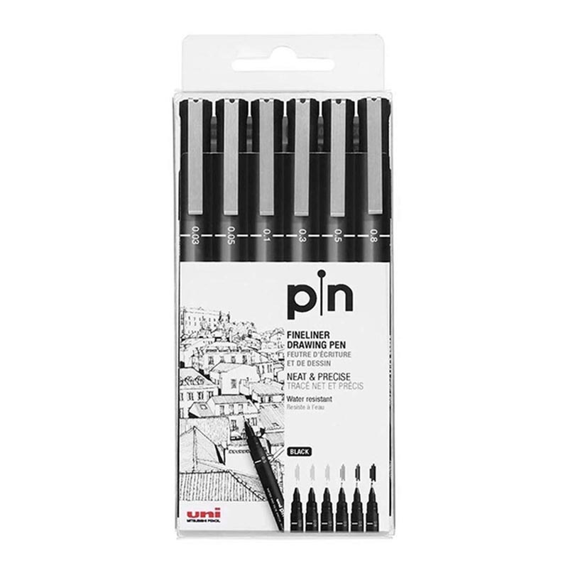 Uni Pin Fineliner Drawing Pen Set of 6